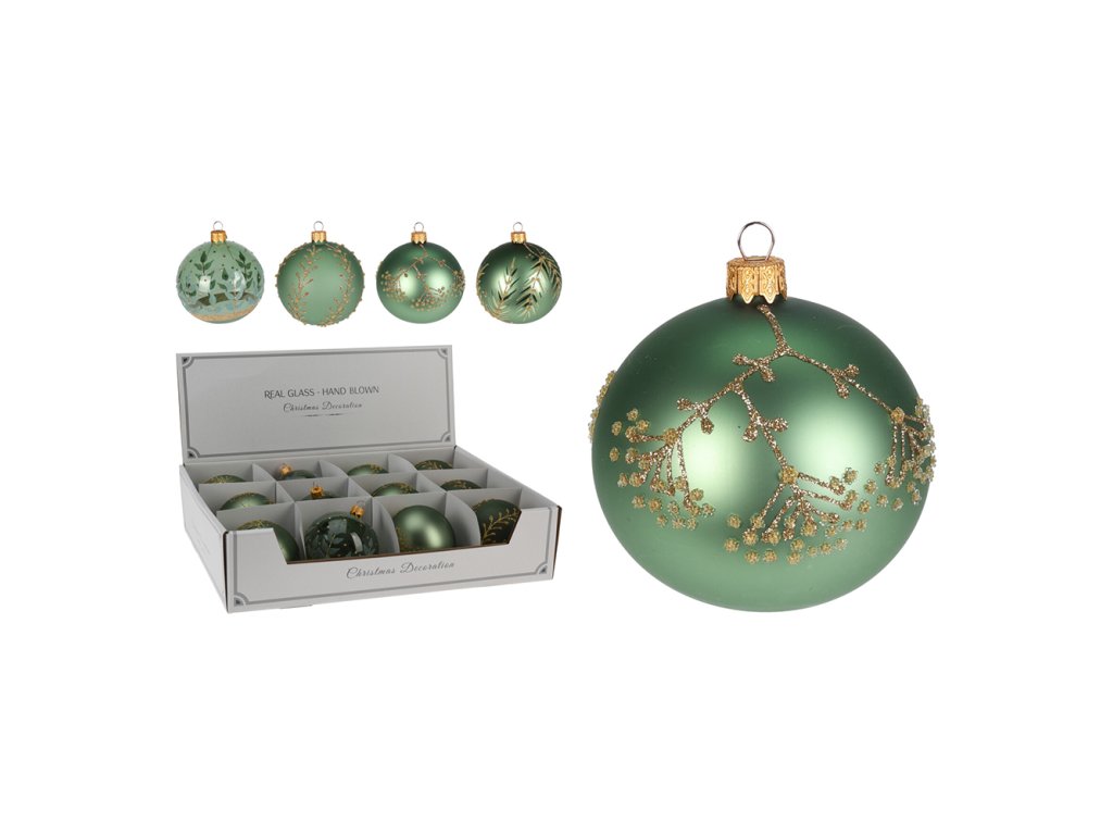Vánoční skleněná koule 8 cm - ručně foukaná, zelená ve 4 designech