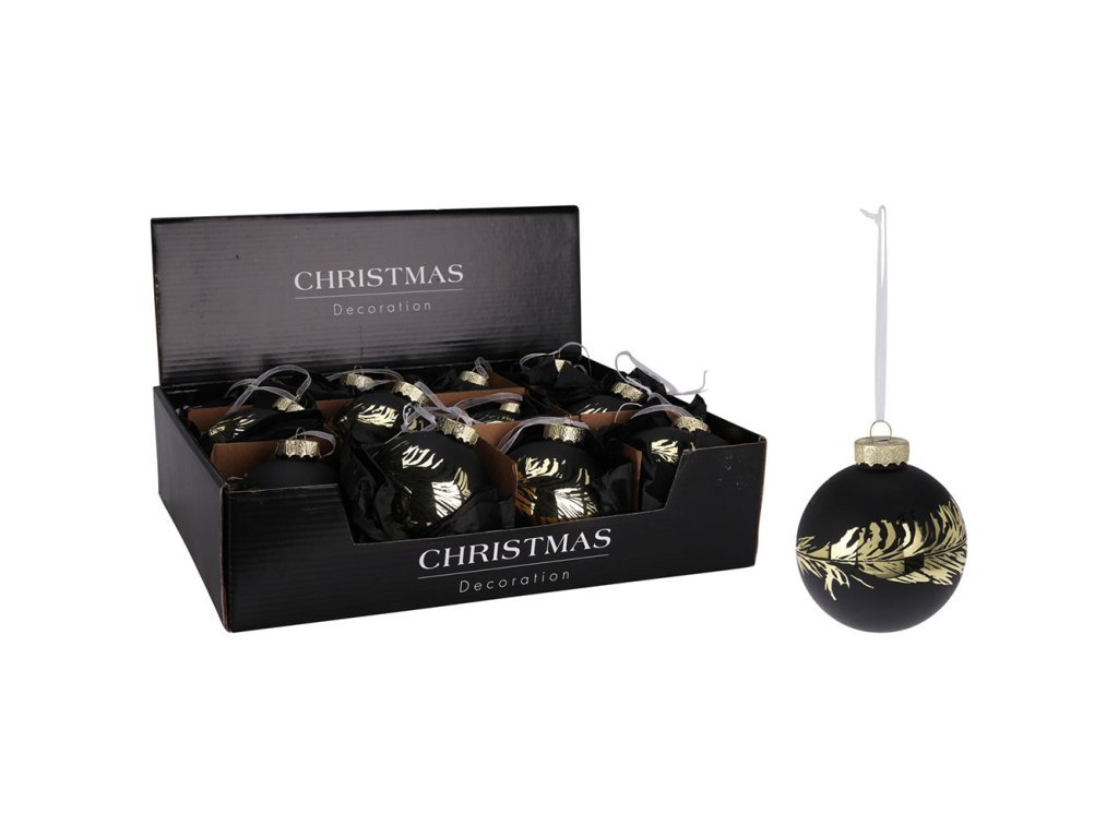 Vánoční skleněná koule 80 mm - černá, zlatý dekor (cena za 1 ks)