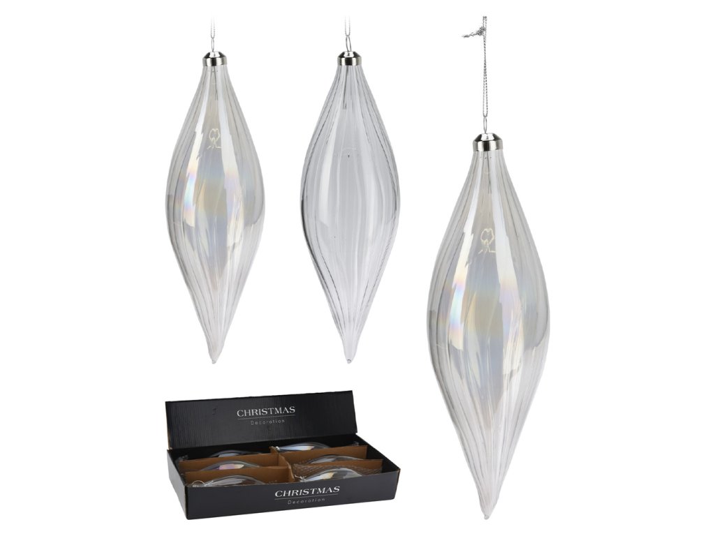 Vánoční skleněná ozdoba 21 cm, bílá (cena za 1 ks)