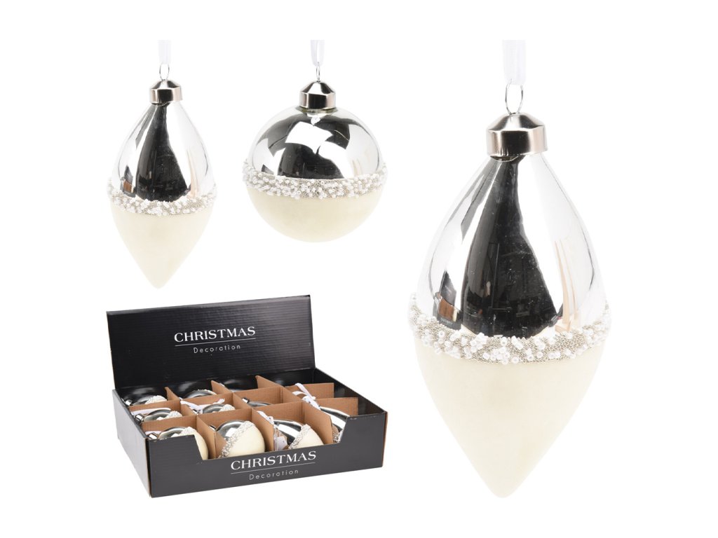 Vánoční skleněná ozdoba 80 mm, stříbrný samet (koule, kentaur) cena je za 1 ks