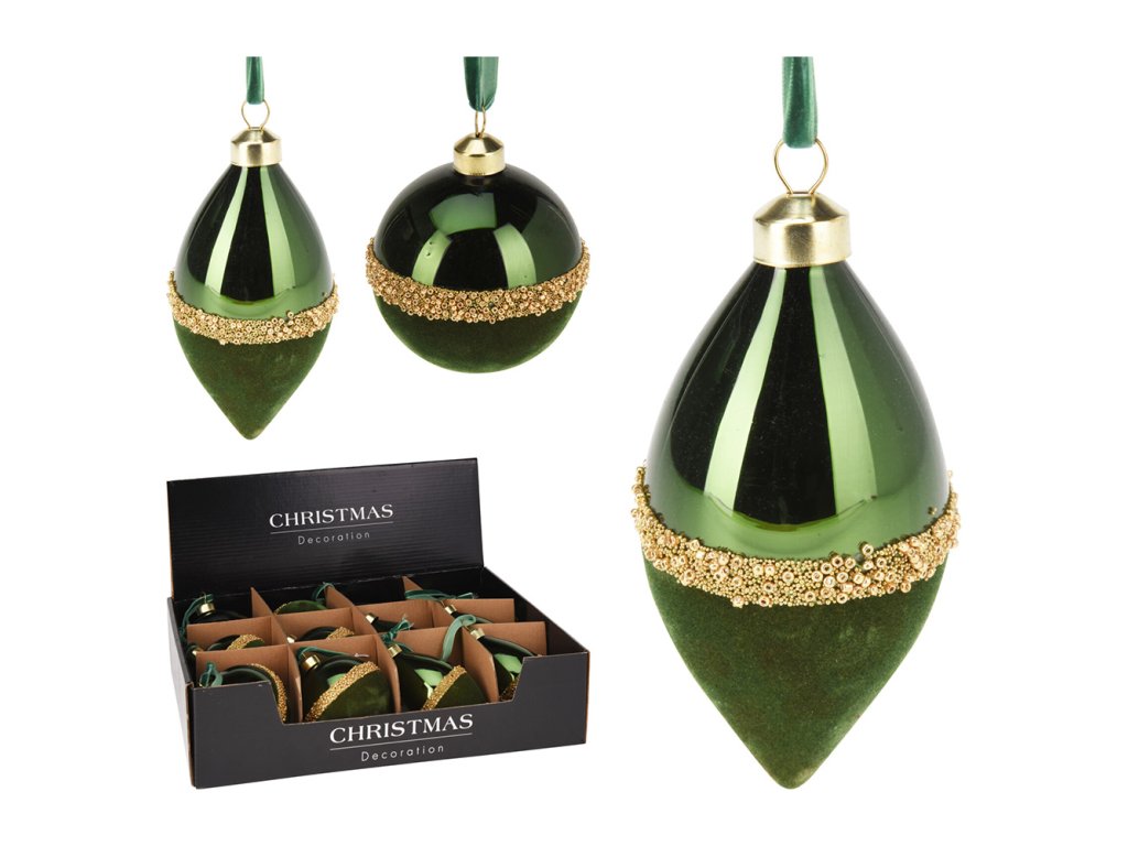 Vánoční skleněná ozdoba 80 mm, zelený samet (koule, kentaur) cena je za 1 ks
