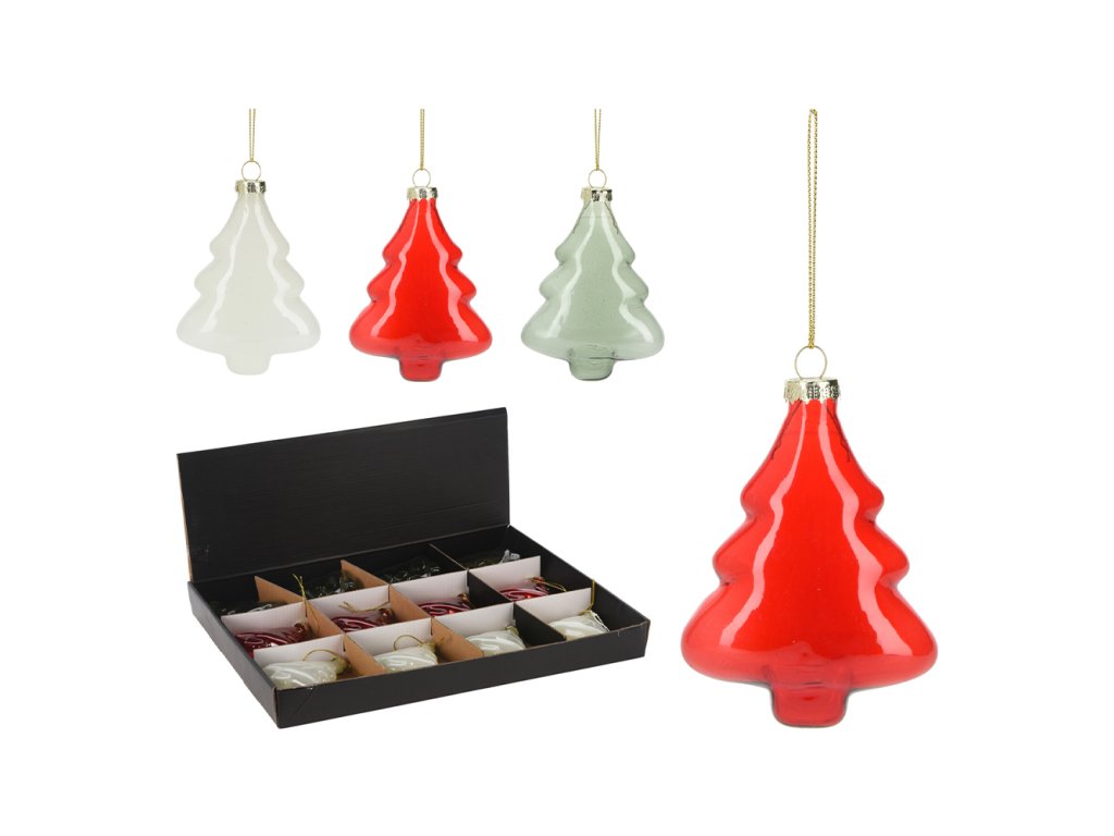 Vánoční skleněná ozdoba stromek 9,5 cm - 3 barevná provedení