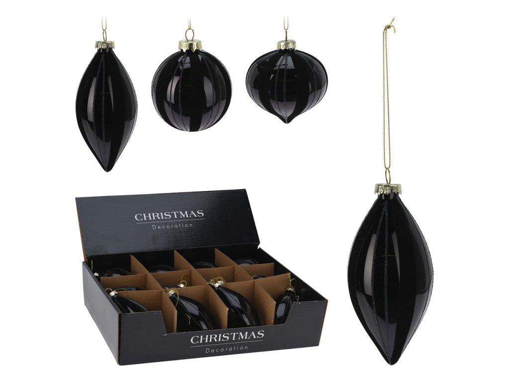 Vánoční skleněné ozdoby - mix tvarů, černé (cena je za 1 kus)
