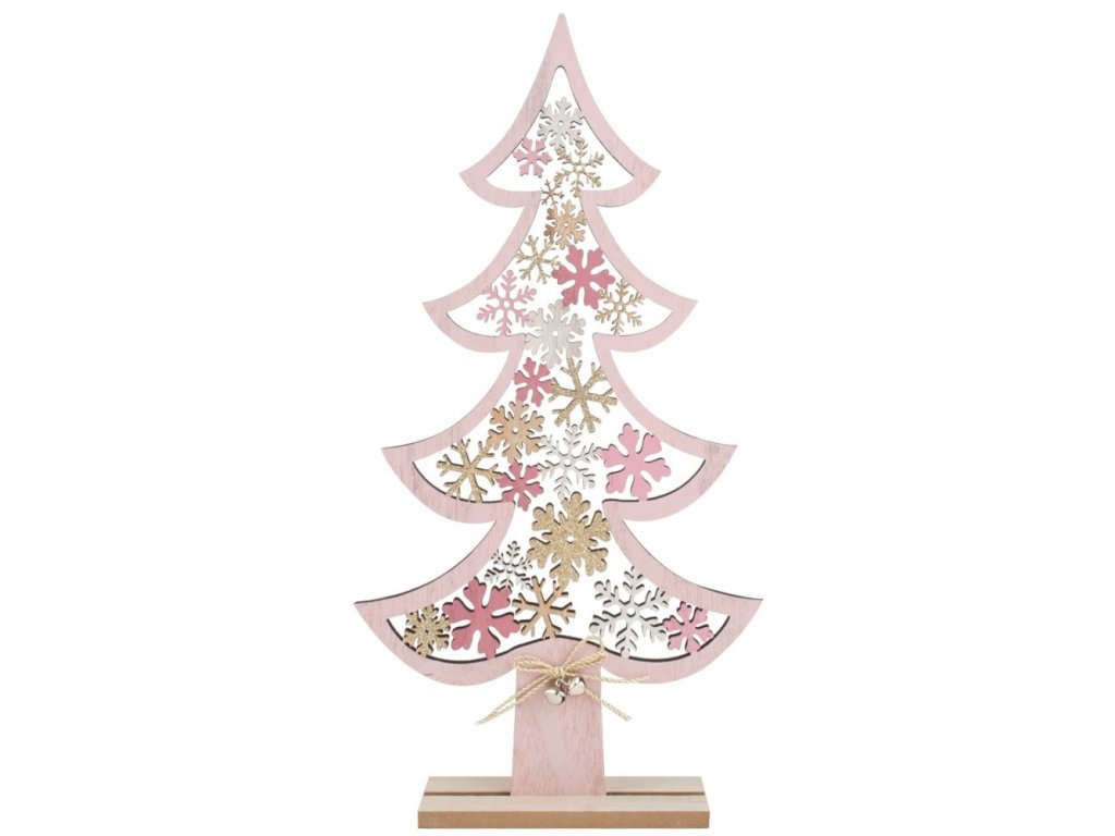 Vánoční strom dřevěný s vločkami 20 x 39 cm - růžový