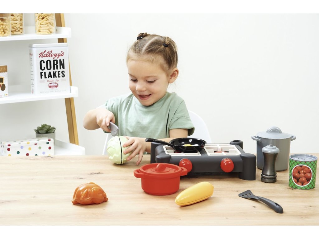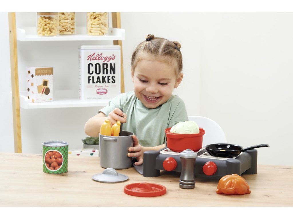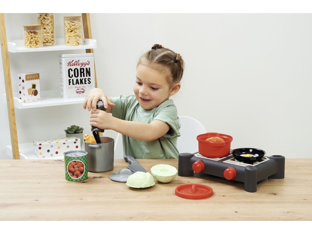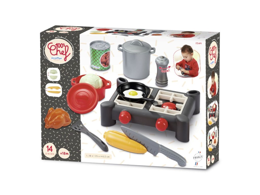Dvouplotýnkový vařič se sadou hrnců s pokličkami, rendlíky, pánvičkou, potravinami a dalším příslušenstvím. Sada obsahuje 14 ks. Rozměry variče 21 x 17 x 5 cm.Doplňkové parametry