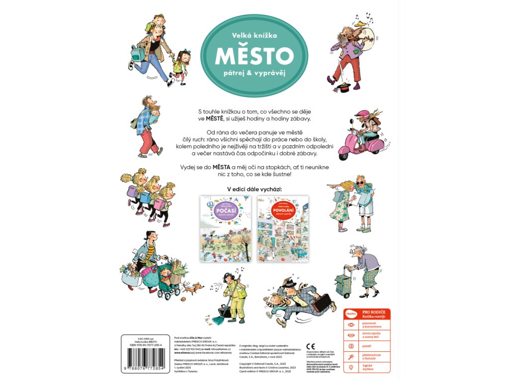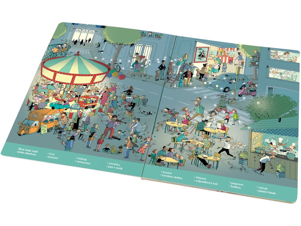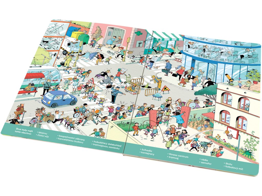 S touhle knížkou o tom, co všechno se děje ve MĚSTĚ, si užijete hodiny a hodiny zábavy! Budete pozorně sledovat, co se kde šustne, v průběhu celého dne. Objevíte tu spoustu příběhů s dobrým koncem, ale i řadu neslavných příhod. Mějte oči na stopkách! Každá stránka je plná detailních barevných obrázků, v nichž lze donekonečna objevovat vždy nové a nové věci, vtípky, postavy i jejich dobrodružství. Řada z nich je úplně obyčejných, ale mnohé jsou tak neobvyklé, že je lze spatřit nebo prožít právě jen na stránkách tohohle krásného velkoformátového leporela.Doplňkové parametry