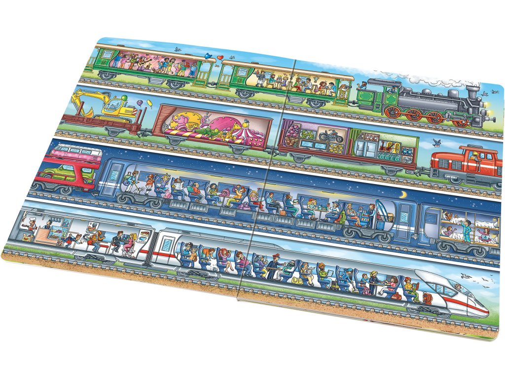Tohle velkoformátové obrázkové leporelo ocení především fanoušci vlakové dopravy. Do světa lokomotiv, vagonů, kolejnic a nádraží se podívají velmi zblízka na úžasných detailních ilustracích. Seznámí se s těmi, kdo na železnici pracují, s cestujícími se vydají na fascinující výlet historickým vláčkem nebo nejmodernějším rychlíkem. Pojedou dnem i nocí, profrčí tunely i mosty. Poznají čilý ruch velkých nádraží i kouzlo malých venkovských stanic… A když se budou dobře dívat, objeví některé hrdiny na každém obrázku v knížce, a tak s nimi mohou prožívat jejich příběhy.Doplňkové parametry