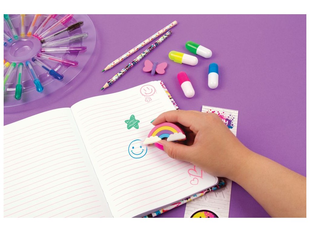 Velká otočná sada kancelářských potřeb obsahuje blok, 20 mini gelových per, 2 gumy, 2 barevné tužky, 4 zvýrazňovače, 4 vinylové samolepky.Doplňkové parametry