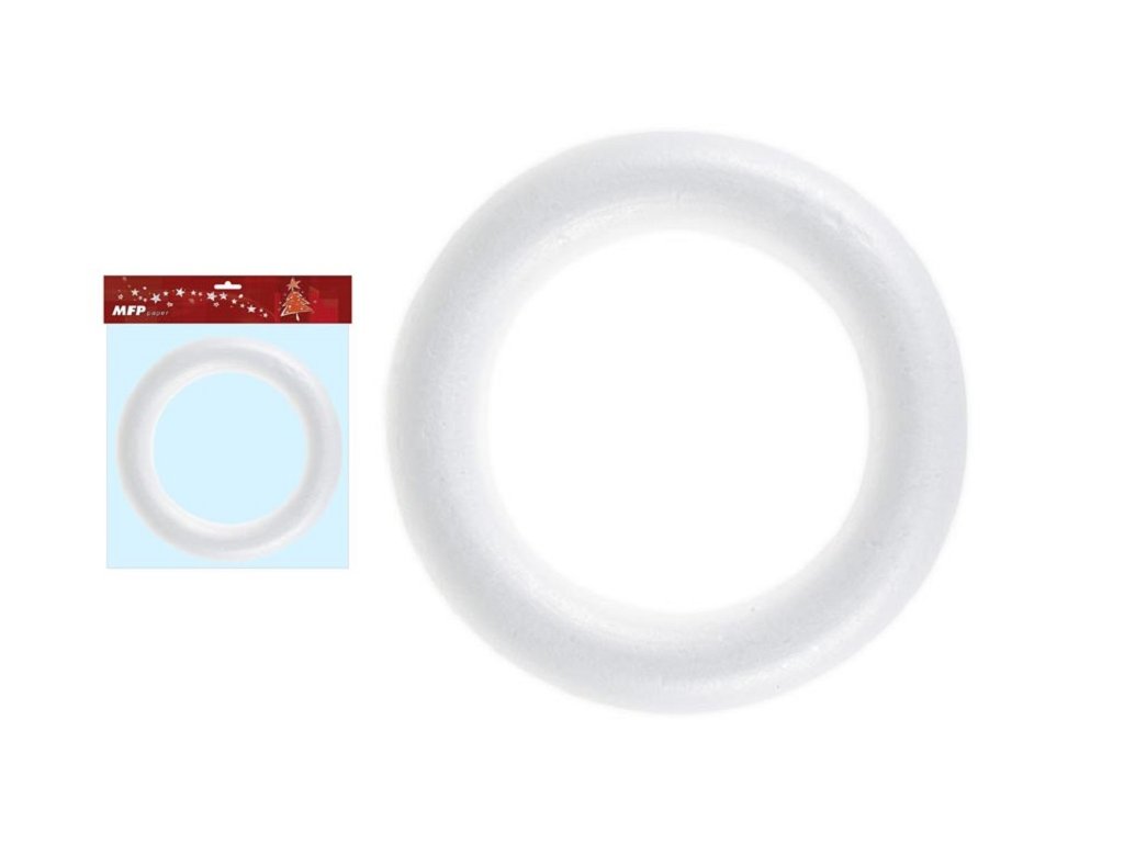 Polystyrenový věneček je vhodný jako polotovary k různým dekoracím. Stačí jej oplést, obháčkovat nebo jen obmotat přízí a vykouzlíte originální doplněk k různým příležitostem. Polystyrenový věneček lze ozdobit umělými rostlinami, nebo různými ozdobami a výsledný produkt lze použít jako závěsnou dekoraci na dveře, zeď. Je vhodný také na výzdobu adventních věnců. Vnější průměr: 285mm Vnitřní průměr: 205mm Výška: 35mm Uvedená cena je za 1 ks. Dodáváme v sáčku se závěsem.Doplňkové parametry