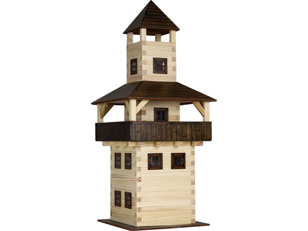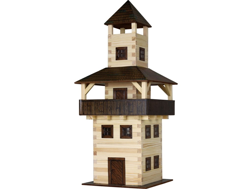 Dřevěná slepovací stavebnice Walachia - Věž. Slepovací stavebnice Walachia jsou dřevěné modely domečků a staveb z Valašského kraje v měřítku 1:32. Základem jsou dřevěné hranolky 9x9 mm a k tomu jsou v sadě vždy všechny papírové doplňky - okna, dveře, střešní části atd. Pro lepení se používá lepidlo Herkules, není však součástí stavebnice. Přiložený je montážní návod a malé kapitoly z historie lidové architektury. Návod pro stavebnici Walachia najdete i zde: Věž. Níže je označení obtížnosti číslem 1 - 5, přičemž 1 je nejlehčí. Rozměry: 18 x 18 x 43 cm Počet dílů: 276 Obtížnost: 3Doplňkové parametry