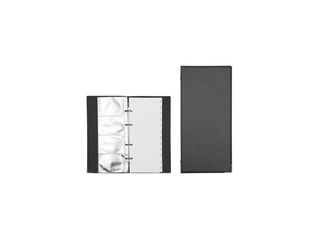 Vizitkář 4-kroužkový střední velikosti,obsahuje 10 stran s abecedním rozřaďovačem. Celkově na 40 vizitek.Doplňkové parametry
