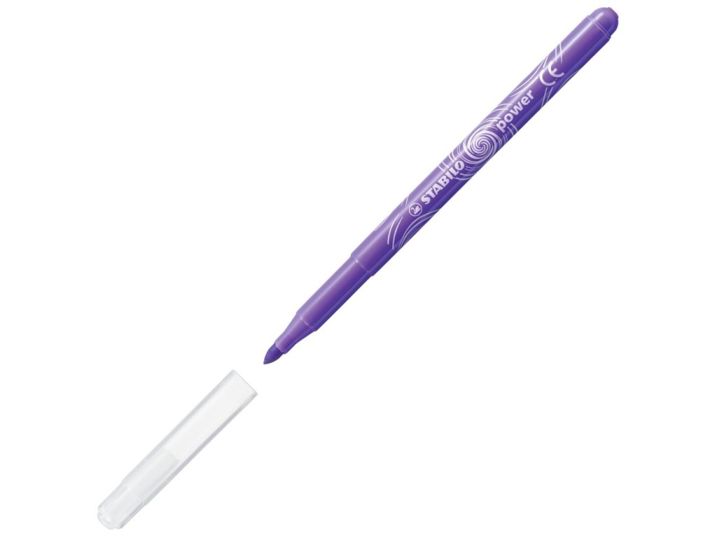 STABILO power - Vláknový fix s intenzivním barevným výdejem pro každého, kdo rád maluje krásné obrázky ve škole nebo doma s přáteli. Díky vysoké ochraně proti vysychání vydrží power bez víčka až 8 týdnů (testováno při 23°C a 50% relativní vlhkosti). Je proto ideálním řešením pro maximální zatížení. Inkoust je smývatelný. Robustní hrot M se šířkou stopy přibližně 2 mm je zajištěn proti vtlačení a víčko lze připevnit na konec pera.Doplňkové parametry