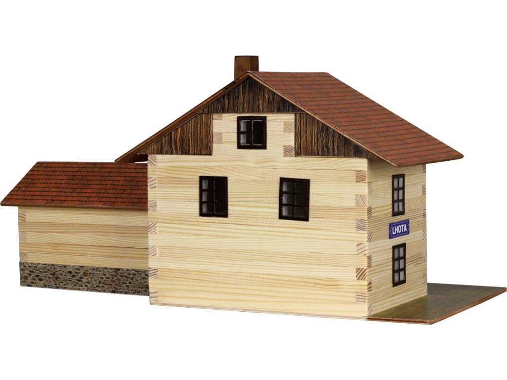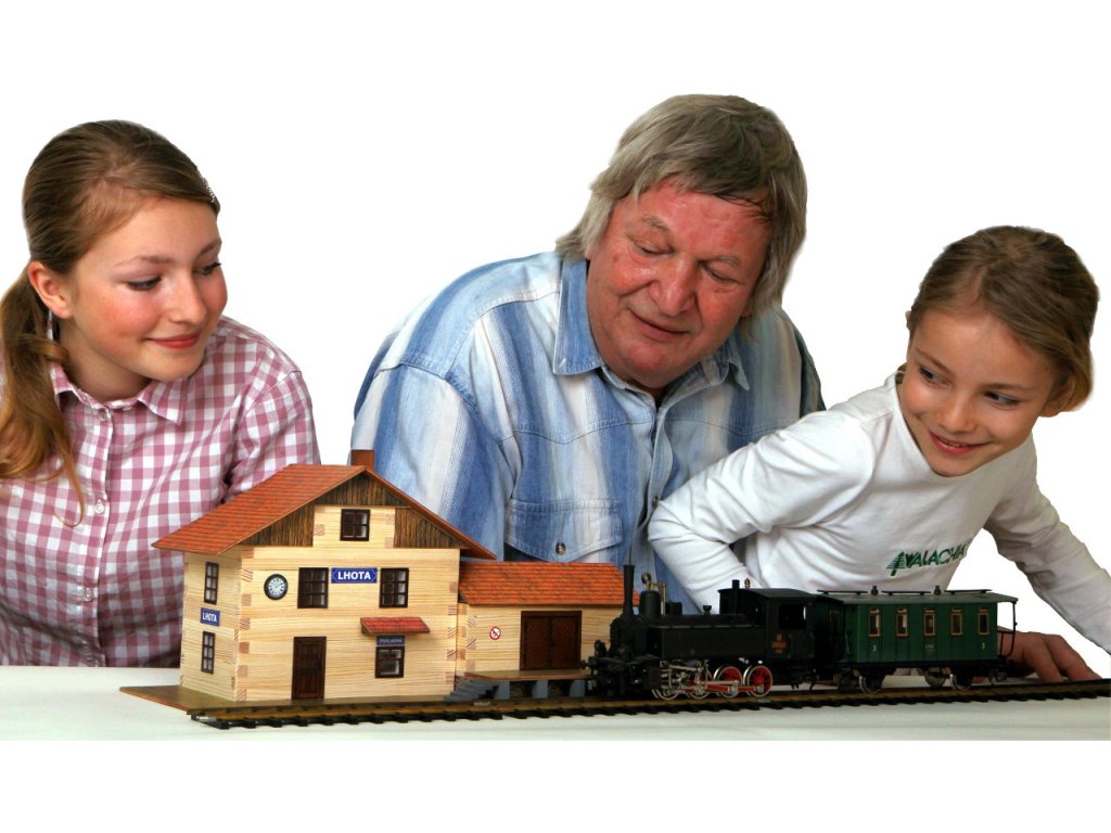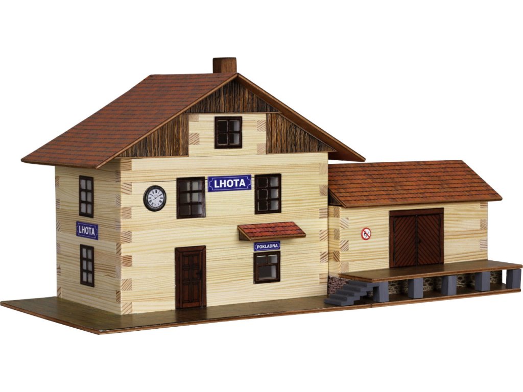 Stavebnice se skládá z 213 dílků a naleznete v ní všechno potřebné k sestavení. Součástí stavebnice jsou dřevěné hranolky o průřezu 9×9 mm daných délek ke stavbě roubených stěn, díly na štíty a střechy, kartonové výseky oken a dveří i barevné papírové potisky, plochy štítů, střech, stříšek, dveří, oken a dlažeb, folie oken a brusný papír na opracování dřevěných dílů (kvalita ploch však opracování potřebuje minimálně). Součástí stavebnice je podrobný schématický montážní plán. Stavebnice se slepuje lepidlem na dřevo nebo papír. Lepidlo není součástí balení. Železniční stanice je vyrobena v měřítku 1:45. Rozměry: 40 x 18 x 18 cm Věk: 8+Doplňkové parametry