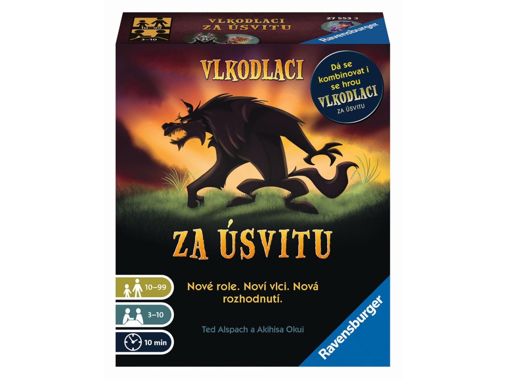 Nic pro strašpytly! Dokážete mistrovsky klamat a šálit? Nikdo si na vás nepřijde? Pak jste tu správně! Nové role. Noví vlci. Nová rozhodnutí. Vlkodlaci jsou zpět, a teď ještě kousavější! Je to vlk nebo ne? To je ta otázka! Protože tady jsou všichni maximálně podezřelí... Po úspěchu blafovací hry „Vlkodlaci za úplňku” na vás čeká 16 zábavných rolí, z toho 13 úplně nových. Vklouzněte do jedné z různých rolí a mějte se na pozoru: Kdo je zákeřný vlkodlak? A kdo neškodný vesničan? Máte jen jednu šanci to zjistit! To vše včetně překvapivých zvratů a těžkých rozhodnutí! Buďte u toho, až se znovu ozve: „Všichni zavřete oči!” Tato napínavá společenská hra vás s partou přátel zabaví klidně na celý večer. Nechce se nikdo z vás ujmout role moderátora? Nevadí. Součástí hry je aplikace, kterou si snadno a zdarma stáhnete do svého chytrého telefonu, a pomocí nahrávek za vás převezme roli moderátora a provede vás celou hrou. Objevte 13 zbrusu nových rolí! Exkluzivně: Vědma. Obsah: 16 karet rolí, 16 žetonu rolí, 2 štíty, 6 artefaktů.Doplňkové parametry