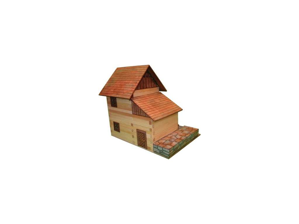 Dřevěná slepovací stavebnice Walachia - Vodní mlýn. Slepovací stavebnice Walachia jsou dřevěné modely domečků a staveb z Valašského kraje v měřítku 1:32. Základem jsou dřevěné hranolky 9x9 mm a k tomu jsou v sadě vždy všechny papírové doplňky - okna, dveře, střešní části atd. Pro lepení se používá lepidlo Herkules, není však součástí stavebnice. Přiložený je montážní návod a malé kapitoly z historie lidové architektury. Níže je označení obtížnosti číslem 1 - 5, přičemž 1 je nejlehčí. Rozměry: 24 x 18 x 22 cm. Počet dílů stavebnice: 196. Obtížnost: 5Doplňkové parametry