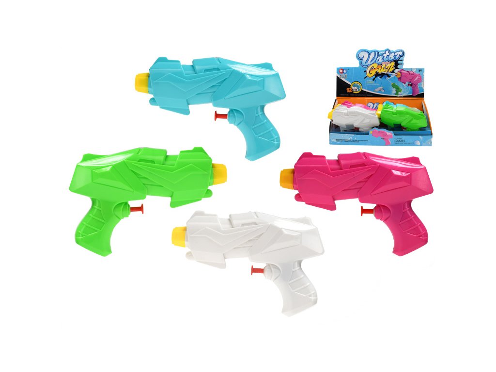 Vodní pistole ve čtyřech barevných variantách. Rozměr: 15,5 cmBarvy: zelená, modrá, bílá, růžováMateriál: plast Cena za 1 ks. Dodáváme dle skladové dostupnosti, případně si napište o požadovanou barvu. Vhodné pro děti od 3 let.Doplňkové parametry