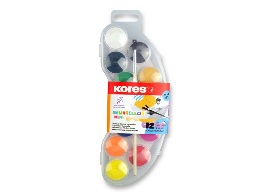 Vodové barvy KORES Akuarellas Mini - 12 barev, průměr 25 mm