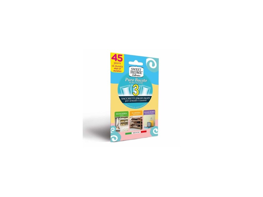 Vonné sáčky Sweet Home Collection Talco s čistou pudrovou vůní se vyznačují dlouhotrvajícími intenzivními vůněmi. Jsou určeny do šatních skříní, zásuvek, zavazadel, botníků a sportovních tašek. Balení obsahuje 3 ks sáčků..Doplňkové parametry
