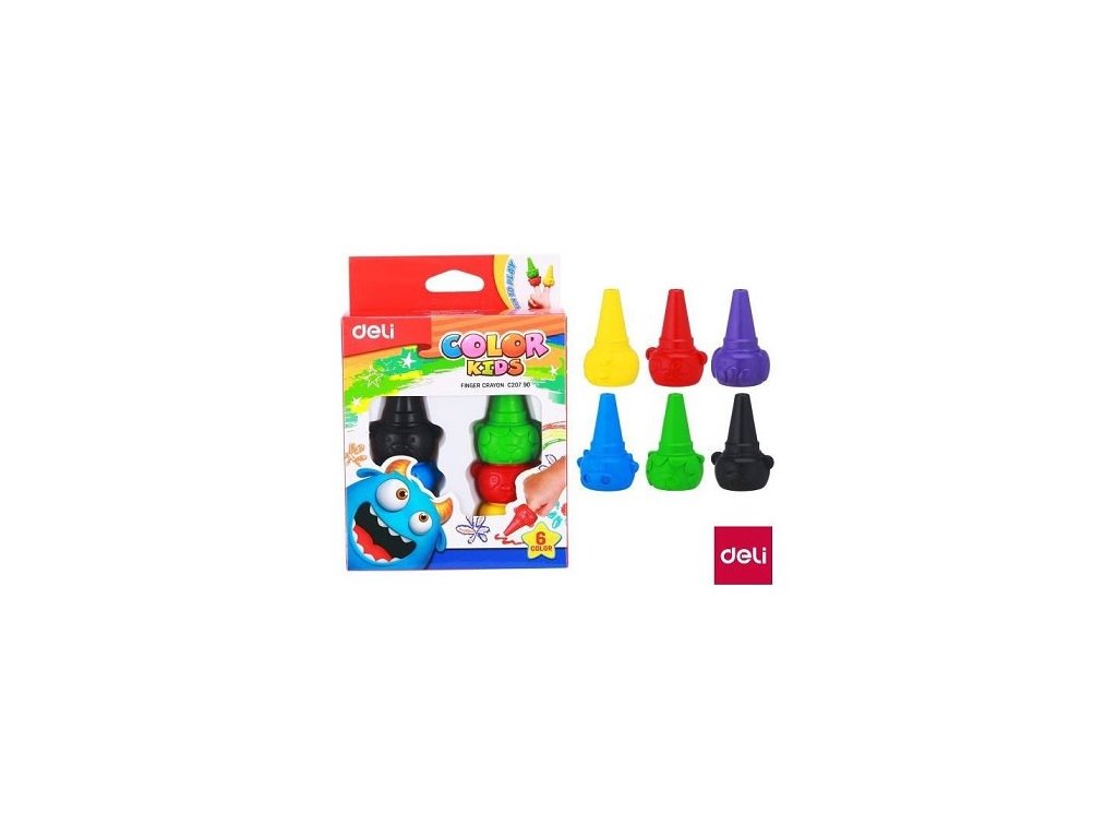 Prstové voskovky, které jsou ideální pro malé děti. Balení obsahuje 6ks zářivých a sytých barev. Barvy jsou netoxické, nezávadné, omyvatelné a nešpiní ruce. Vhodné pro děti od 3 let.Doplňkové parametry