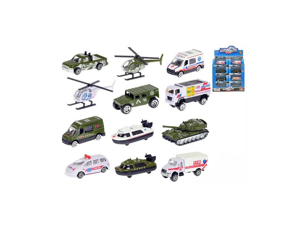 Druhy: army- pick-up, člun, terénní vozidlo, tank, dodávka, vrtulník Barvy: ambulance - člun, pick-up, zásahové vozidlo, sanitka, osobní auto, dodávka Cena uvedena za 1kus! Pro děti od 3 letDoplňkové parametry