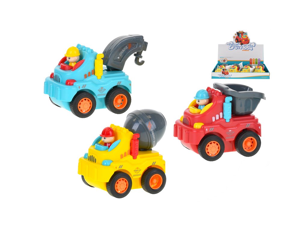 Vozidlo veselé stavební 8cm na setrvačník 3druhy 18m+ 12ks v DBX