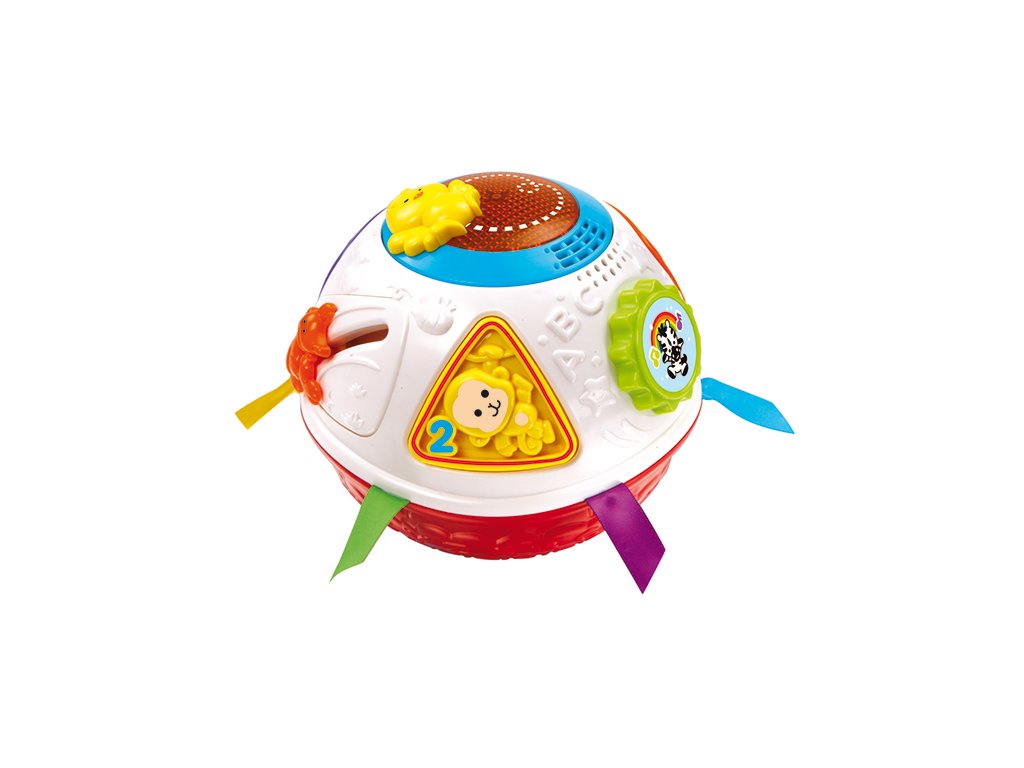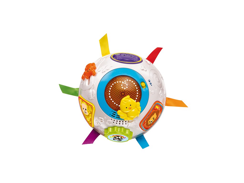 Inovovaná verze prodejního hitu. Míček se zabudovaným pohybovým čidlem provokuje děti k pohybu. Zpívá české písničky, hraje 15 melodií, vydává zvuky zvířat, pojmenovává tvary, čísla do tří, zvířata. Podporuje rozvoj motoriky...Doplňkové parametry