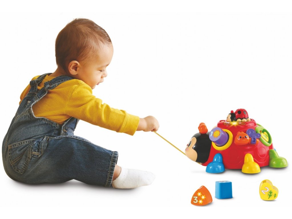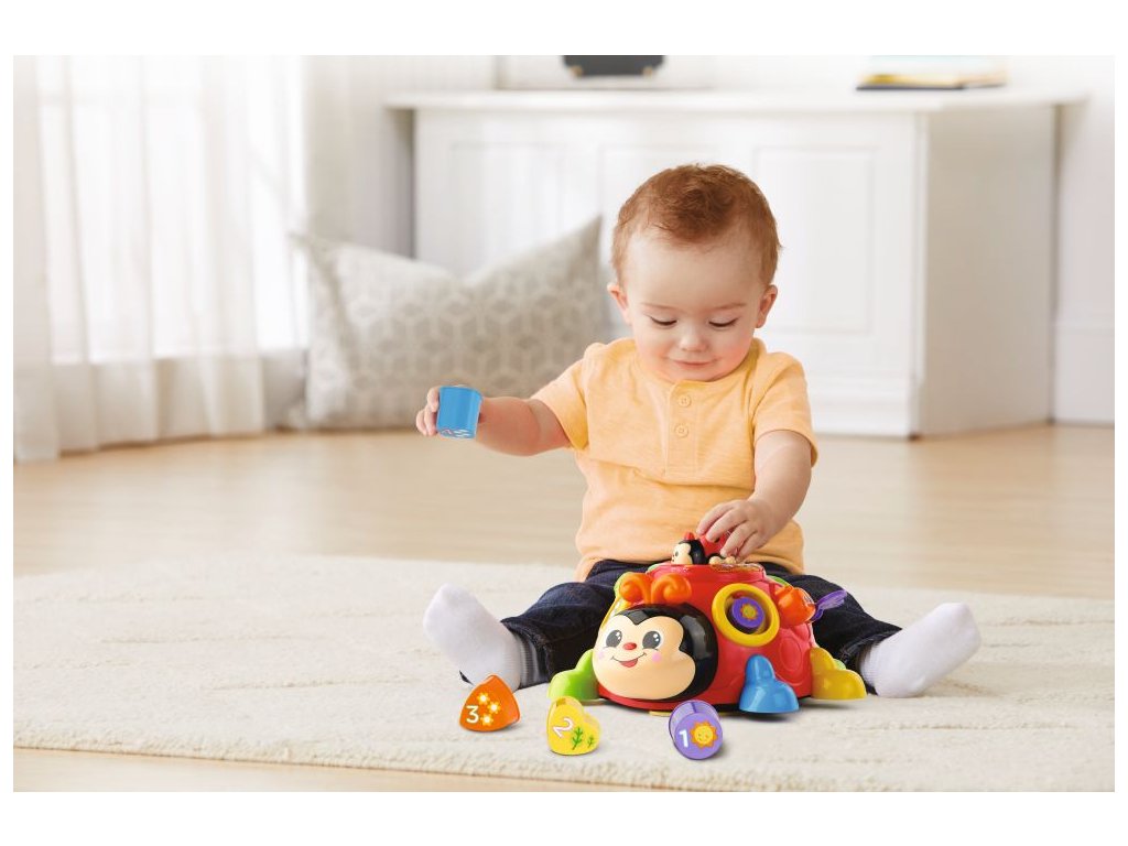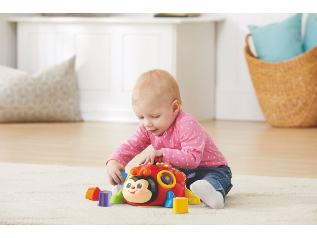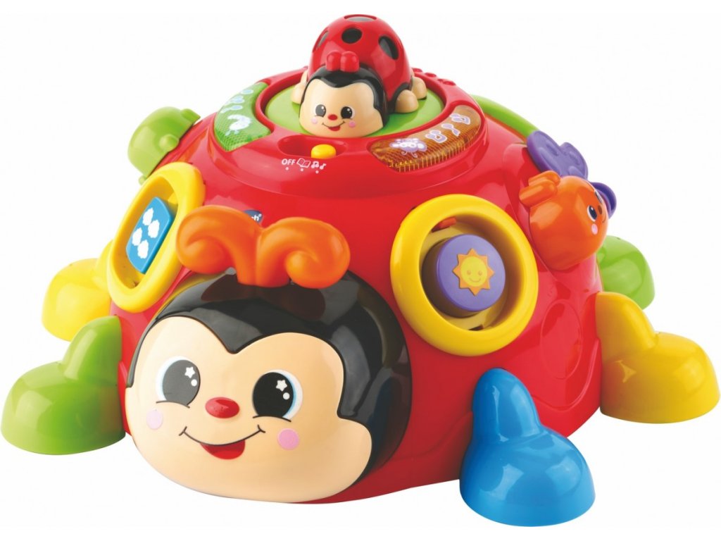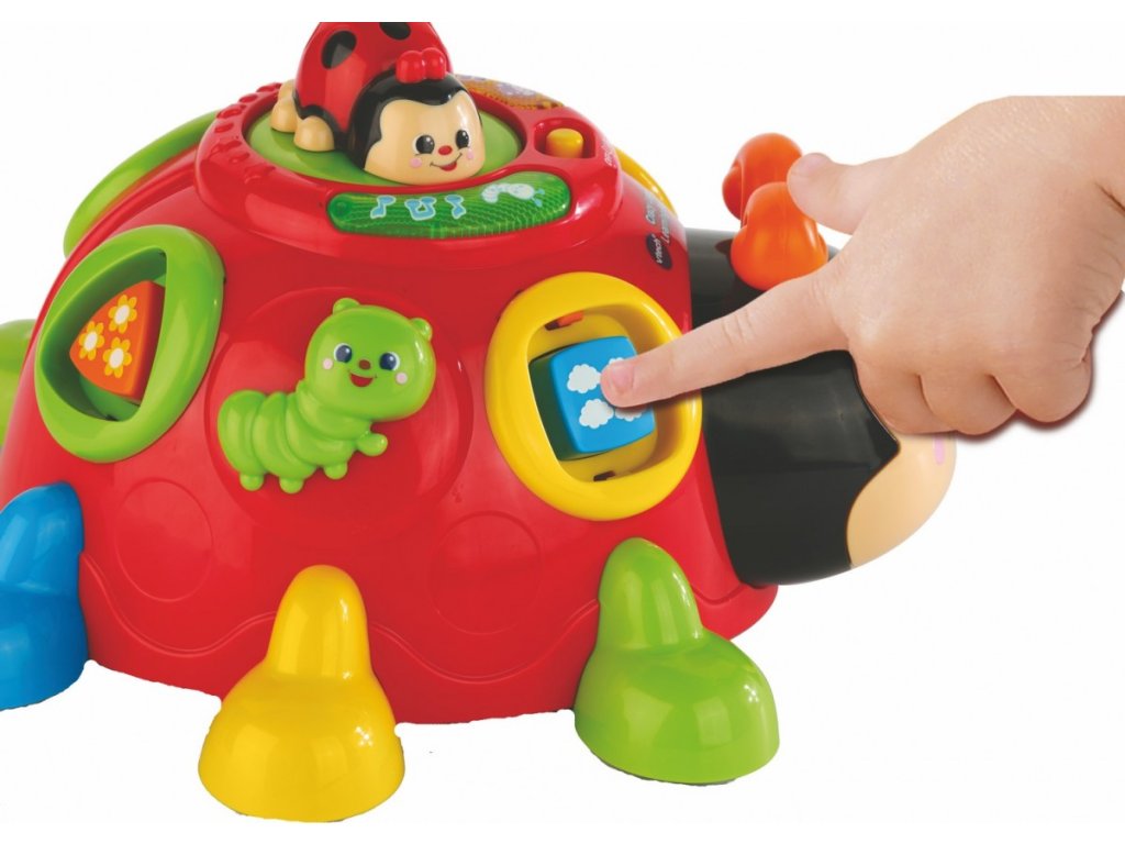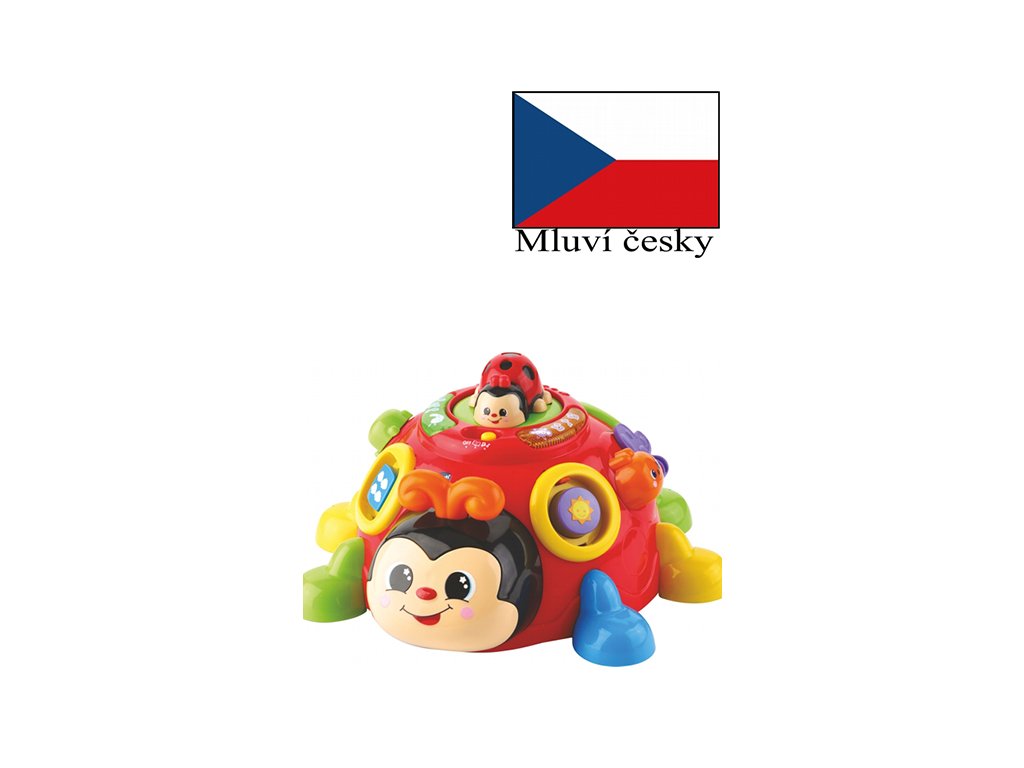 Zábavné učení s malou beruškou a její maminkou! Interaktivní „vkládačka“ v českém jazyce. Hledáním a vkládáním správných tvarů do otvorů rozvíjí dítě své motorické schopnosti. Rozvíjí logické myšlení. Učí, slova, barvy i počítat. Stisknutím malé berušky vyskočí všechny vložené tvary ven. Beruška aktivně vybízí děti ke hře i k poznávání tvarů, barev, obrázků a čísel. Berušku i s jejím děťátkem lze také táhnout na provázku, přičemž se beruška roztomile kolébá. K posílení motoriky dítěte slouží i další pohyblivé prvky jako je otáčející se malá beruška, pohyblivá housenka nebo křídla motýlka. Beruška zazpívá 2 písničky a zná více než 60 melodií, slov, zvuků a frází Vhodné pro děti od 12 měsíců. 2 AA baterie jsou součástí balení. Rozměr hračky: 25 x 25 x 14 cm píseň 1: Beruška já velká jsem, s rozmilým děťátkem. My k zábavě tě voláme, spolu tvary poznáme. píseň 2: Cestu dlouhou máme, spolu si zpíváme. Proto nudu neznáme!Doplňkové parametry