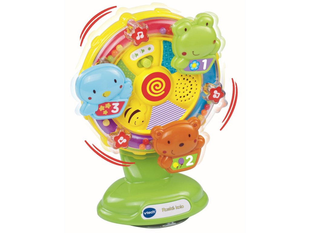 Povozit zvířátka na Ruském kole, tak to může být úžasná zábava! Hudební a vzdělávací hračka pro děti již od 6 měsíců s bezpečnostní přísavkou zabraňující nechtěnému sklouznutí ze stolu. Nenásilnou formou učí děti poznávat čísla, barvy i zvířátka. Podporuje správný vývoj jemné motoriky. Zábavné fráze rozšiřují slovní zásobu dítěte. Roztáčením kola a mačkáním tlačítek děti objevují zákonitosti akce a reakce. Přátelský hlas a zábavné fráze podporují zkoumání. Zahraje 10 melodií a zazpívá 5 písničekDoplňkové parametry