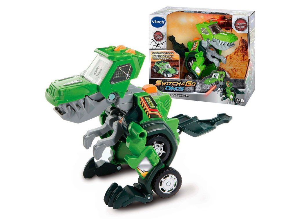 Mluvící auto-dinosaurus s digitálním displejem v českém jazyce. Transformujte svého dinosaura na skvělou čtyřkolku anebo proměňte auto zpět v zuřivého dinosaura. V okamžiku se tento hladový dinosaurus dokáže proměnit na fantastickou čtyřkolku! Displej s animacemi se mění v závislosti na režimu hry: Dinosauří tvář nebo řidič v režimu čtyřkolky. V režimu Dinosaura pohybem oranžového akčního tlačítka vysune T-Rex hlavu, zvedne ruce a otevře tlamu, ze které mu „šlehá oheň“. Další tlačítka aktivují zábavné zvuky a fráze. Obsahuje • více než 60 zvuků a frází. • displej, který zobrazuje různé animace v závislosti na herním režimu. • 2 tlačítka, která aktivují zábavné zvuky a fráze • nastavení hlasitosti zvukuDoplňkové parametry