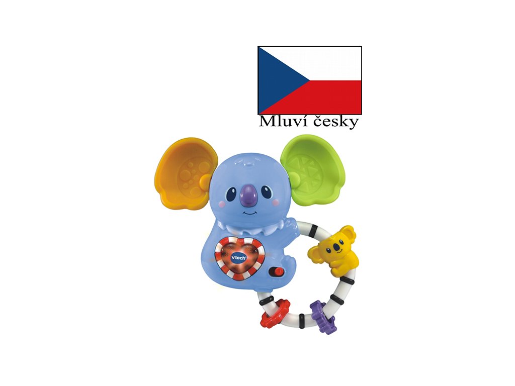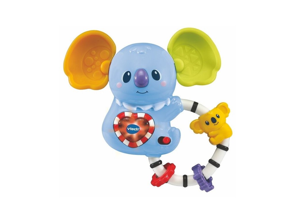 Chrastítko i měkká ouška k žužlání – to je Upovídaný medvídek Koala od VTech® se zabudovaným pohybovým čidlem. Když dítě s Koalou zamává nebo zatřese, pak odměnou mu budou roztomilé věty, slova, blikání červeného srdíčka, i srandovní zvuky. Zatřesením nebo stiskem červeného srdíčka se spustí milé písničky, fráze, zvuky a melodie, kterých je více než 50. Snadno uchopitelné držátko, navléknutá kolečka a otočná ouška rozvíjí přirozené motorické schopnosti dítěte i schopnosti uchopení předmětu.Doplňkové parametry