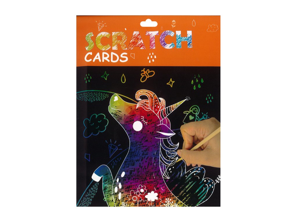 Vyškrabovací karty A6 (mix 4 motivů) 4 ks + dřevěné pero