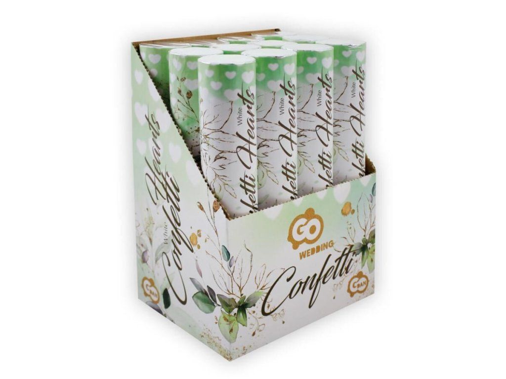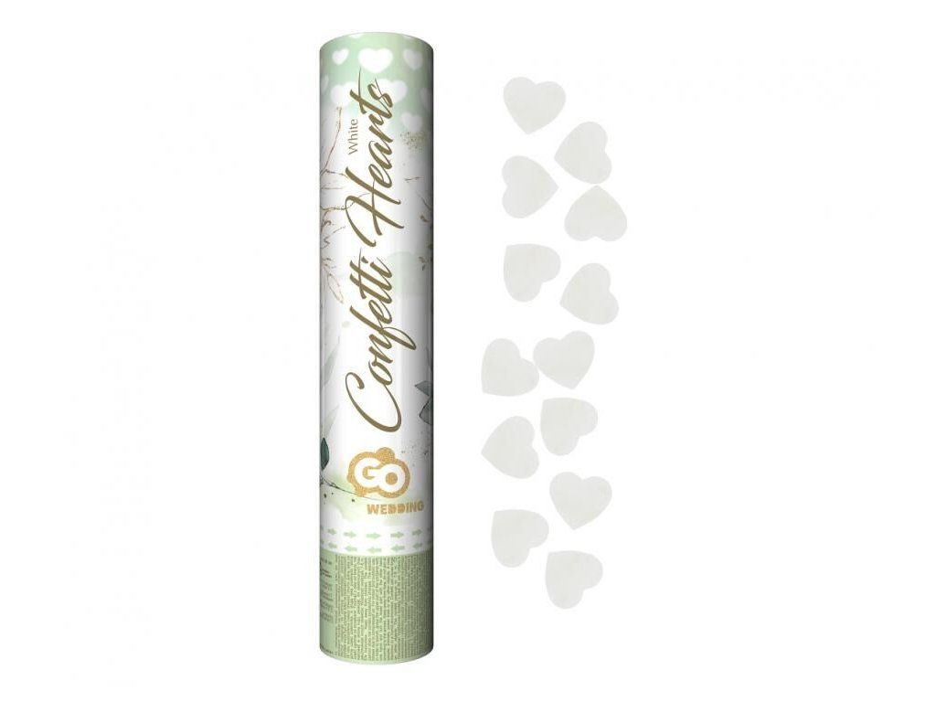 Vystřelovací konfety svatební - bílé srdíčka