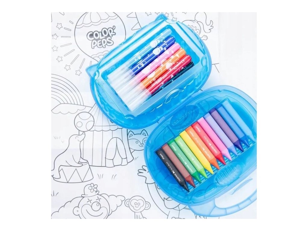 Praktický a opětovně použitelný kufřík, který otevřou i malé děti, obsahuje: 10 Jumbo fixů 12 Jumbo voskovek plakát 51 x 33 cm pro vymalování Vlastnosti: fixy mají silný hrot odolný proti poškození při zatlačení inkoust je snadno omyvatelný a vypratelný šířka stopy fixů: 5,9 mm voskovky jsou trojhranné a tělo mají pokryté papírem vosk je měkký a nezanechává stopy na rukou průměr voskovek: 13 mm Vhodné pro děti od 1-9 let.Doplňkové parametry