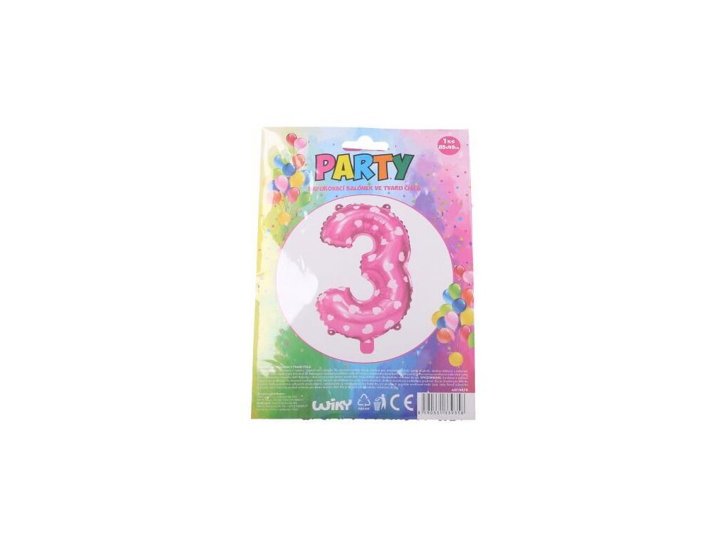 Nafukovací balónek ve tvaru čísla 3, balení obsahuje 1 ks, barva: modrá. Provedení: 75 x 54 cmDoplňkové parametry