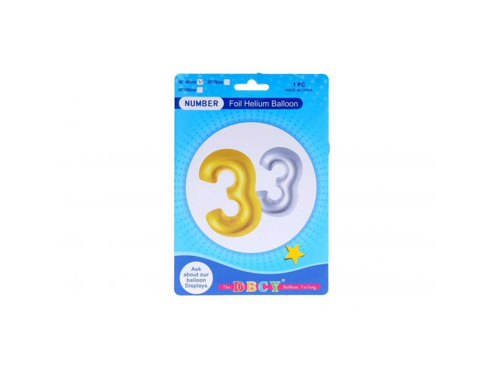 Nafukovací balónek ve tvaru čísla 3, balení obsahuje 1 ks. Provedení: 40 cmDoplňkové parametry