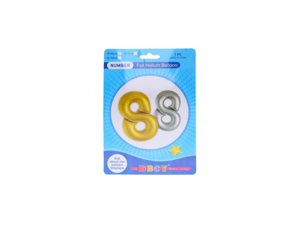 Nafukovací balónek ve tvaru čísla 8, balení obsahuje 1 ks. Provedení: 40 cmDoplňkové parametry