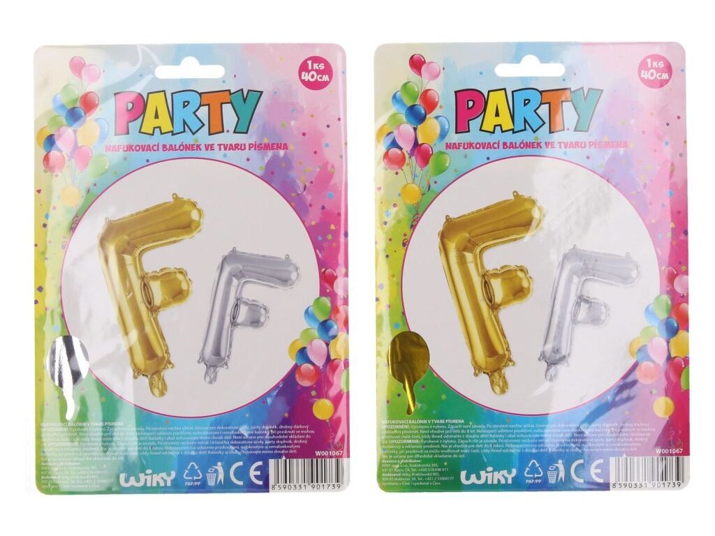 Nafukovací balónek ve tvaru písmene F, balení obsahuje 1 ks. Provedení: 40 cmDoplňkové parametry