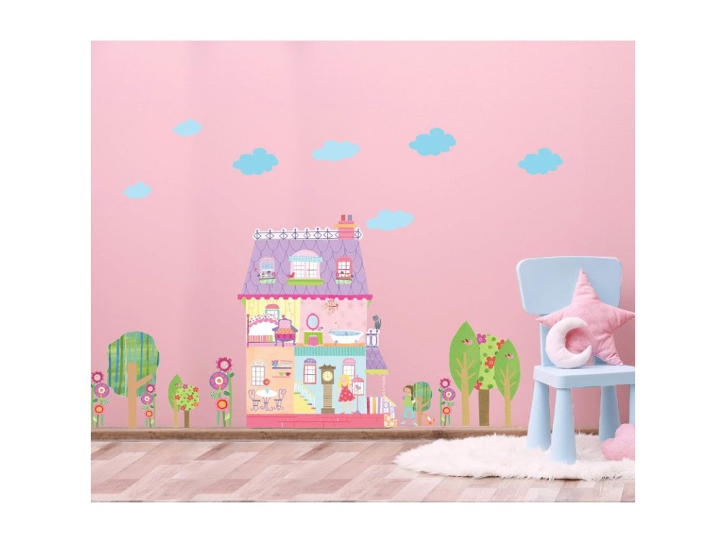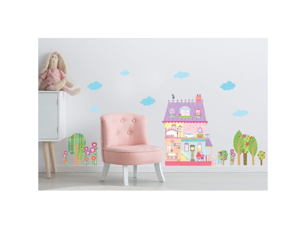 Nádherná kolekce nálepek na zeď PLAY HOUSE. Jednoduše a rychle zkrášlí a zútulní interiér dětského pokoje, herny, čekárny... prostě všech prostor, ve kterých chcete aby se dětičky cítili příjemně.