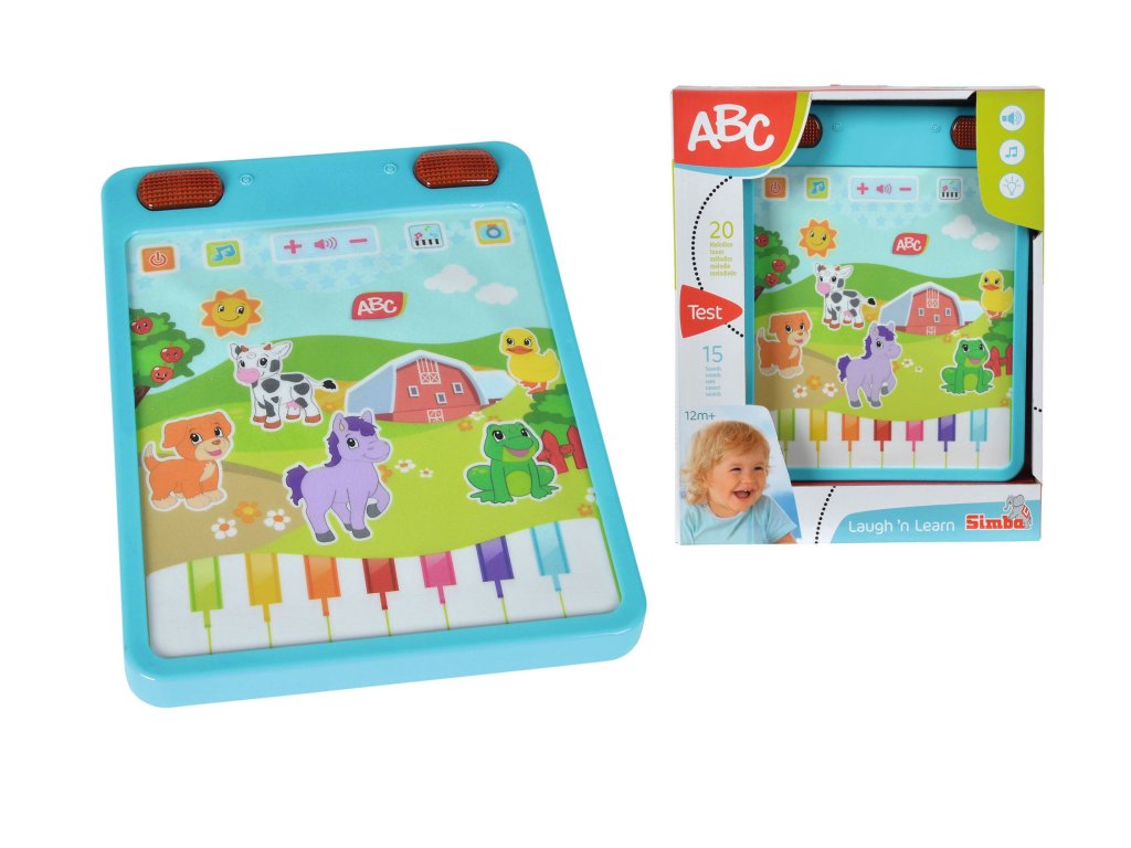 Zábavný tablet se světelnými a zvukovými efekty, hraje 20 melodií, různé zvuky zvířátek a zvuky piana.Doplňkové parametry