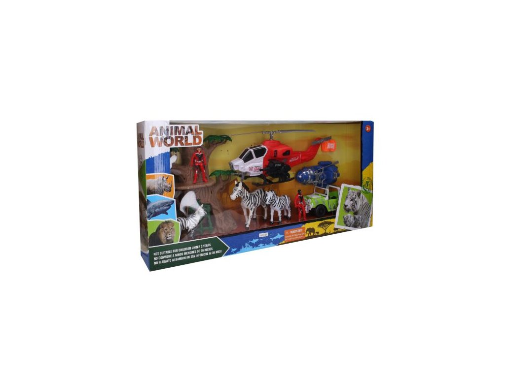 Záchrana zvířat sada s helikoptérou. Obsah balení - helikoptéra 39 cm, člun 19cm, džíp 22 cm, 3x zebra, 2 x figurka záchranář, 1x stromová strážní věž, 1x záchranný kufr. Pro děti od 3 letDoplňkové parametry
