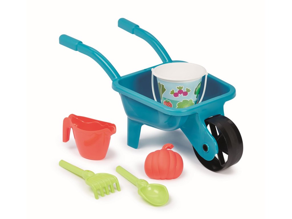 Kolečko na písek s konvičkou, kyblíčkem, hrabičkami, lopatičkou a formičkou na písek. Délka kolečka 66 cm.Doplňkové parametry