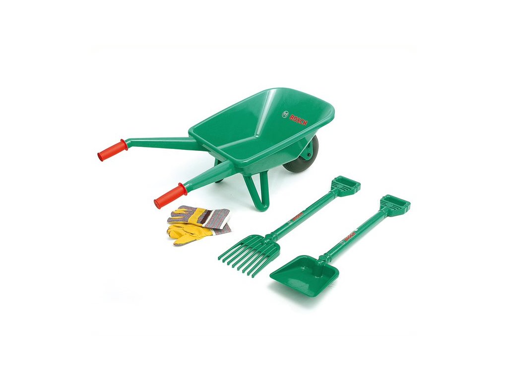 Zahradní set Bosch obsahuje kolečko, zahradní lopatu, vidle a pracovní ochranné rukavice. Rozměr kolečka 71x33x33 cm. Délka nářadí 59,5 cm. Baleno v síťce. Materiál plast. Vhodné pro děti od 3 let.Doplňkové parametry