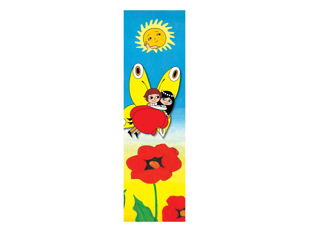 záložka z tuhého materiálu (kartonu), oboustranně tištěná horní postavička/objekt na lícové straně vyseknuta a dolepena, takže ze záložky vystupuje (toto 3D aplikace)Doplňkové parametry