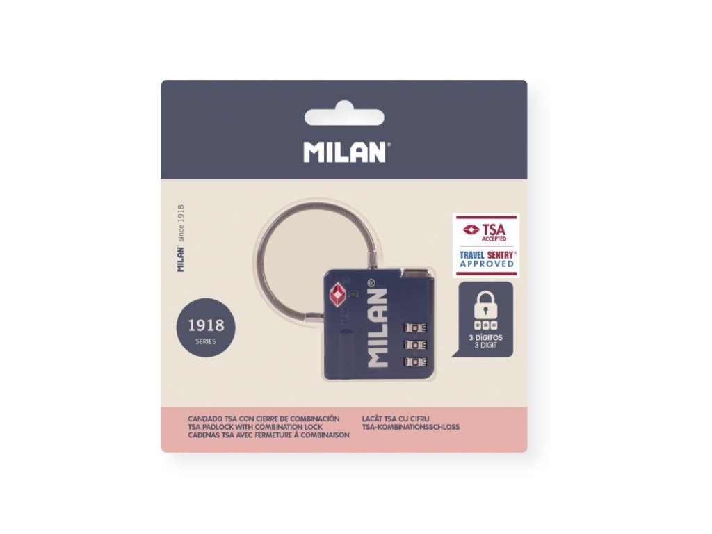 Kovový zámek schválený TSA s 3-místným kombinovaným číslem - uzamykacím systémem.