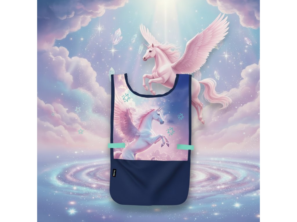 ✨ Kouzelná zástěra pončo Pegas 🦄 pro malé umělce! 🎨 Ideální do výtvarky i na doma. 🏠 Snadné oblékání přes hlavu, zapínání na druky a prostorná kapsa na štětce. 🖌️ Chraňte oblečení stylově! ✨ Odolný materiál, motiv Unicorn, lehoučká a praktická. 💖 Kupte nyní na eshopu! 🛍️🛒