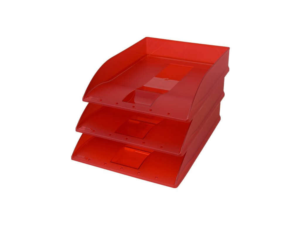 Stohovatelný plastový odkladač dokumentů formátu A4.