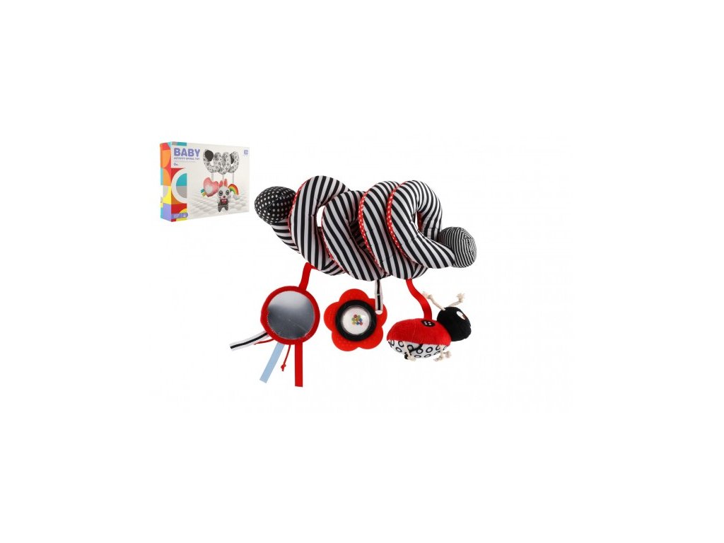 Krásná plyšová hračka na postýlku v kontrastních barvách pro vaše miminko. Hračka s chrastítky a zrcátkem napomáhá při rozvíjení smyslového vnímání dítěte a podněcuje jeho fantazii. Díky spirálovitému tvaru se dá upevnit na postýlku, autosedačku nebo ke kočárku. Rozměr balení: 33 x 25 x 8 cm Vhodné pro děti od narozeníDoplňkové parametry