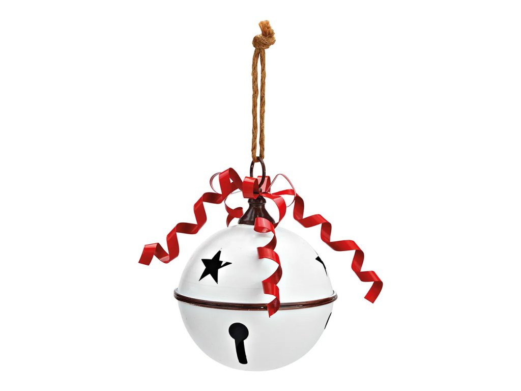 Závěsná dekorace - kovová rolnička, bílá 16x22x16 cm