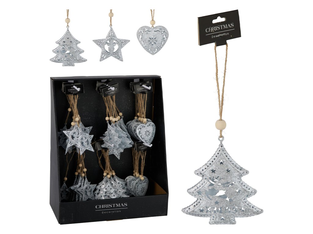 Závěsná dekorace - vánoční motivy 7,5 cm, stříbrná, mix /1ks