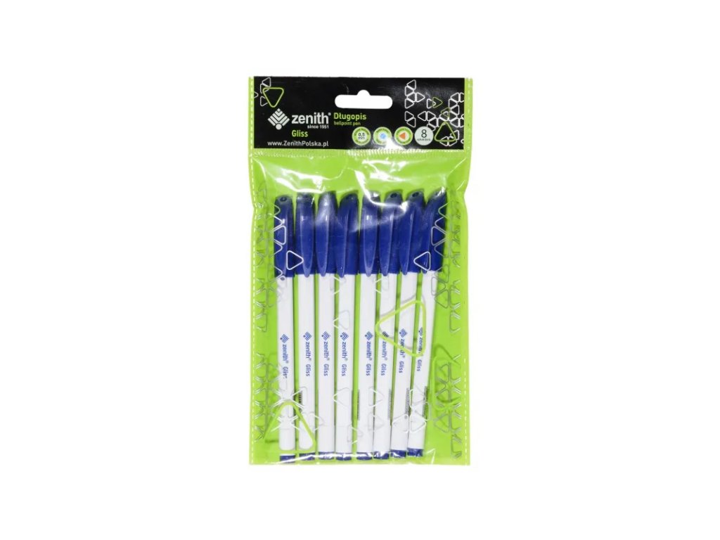 ZENITH Gliss, Kuličkové pero 0,5mm, modré s víkem, 8ks, 201318014